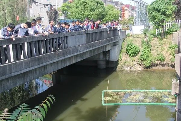 当地大学生实地参观碳纤维生态草的净化功能
