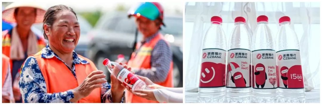 为以行庆为契机,进一步彰显社会责任,浙商银行在行庆月(8月)启动全国公益赠饮“致敬城市守护者”活动,通过与农夫山泉跨界合作,推出联名特标水,以“只赠不卖”的方式,在全国200多个营业网点设清凉“饮水站”。
