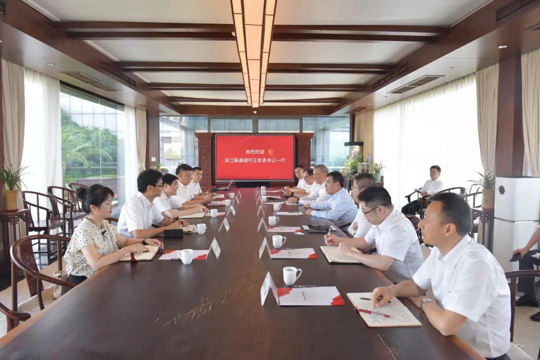 7月26日,浙商银行党委书记陆建强在总行会见中国联合网络通信有限公司浙江省分公司(以下简称“浙江联通”)党委书记、总经理胡行正一行。浙商银行党委委员徐蔓萱,副行长景峰,数字化改革推进办公室、总行战略客户与创新部、金融科技部、后勤保障部(安全保卫部)相关负责人参与座谈。