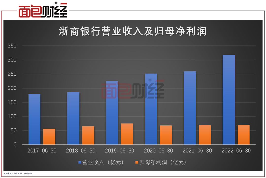财报显示,2022上半年,浙商银行实现营业收入317.40亿元,增幅为22.53%;净利润69.74亿元。由于向实体经济大幅让利等因素影响,利润增速慢于营收增速。