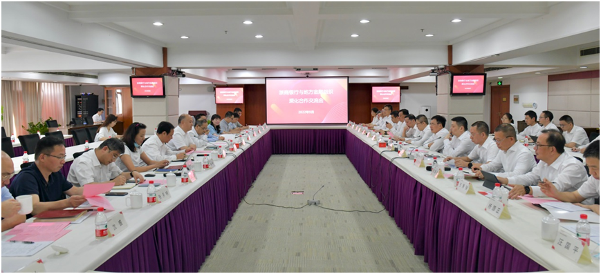 副行长景峰、总行相关部门及子公司负责人、省地方金融监管局相关处室负责人参与了座谈。