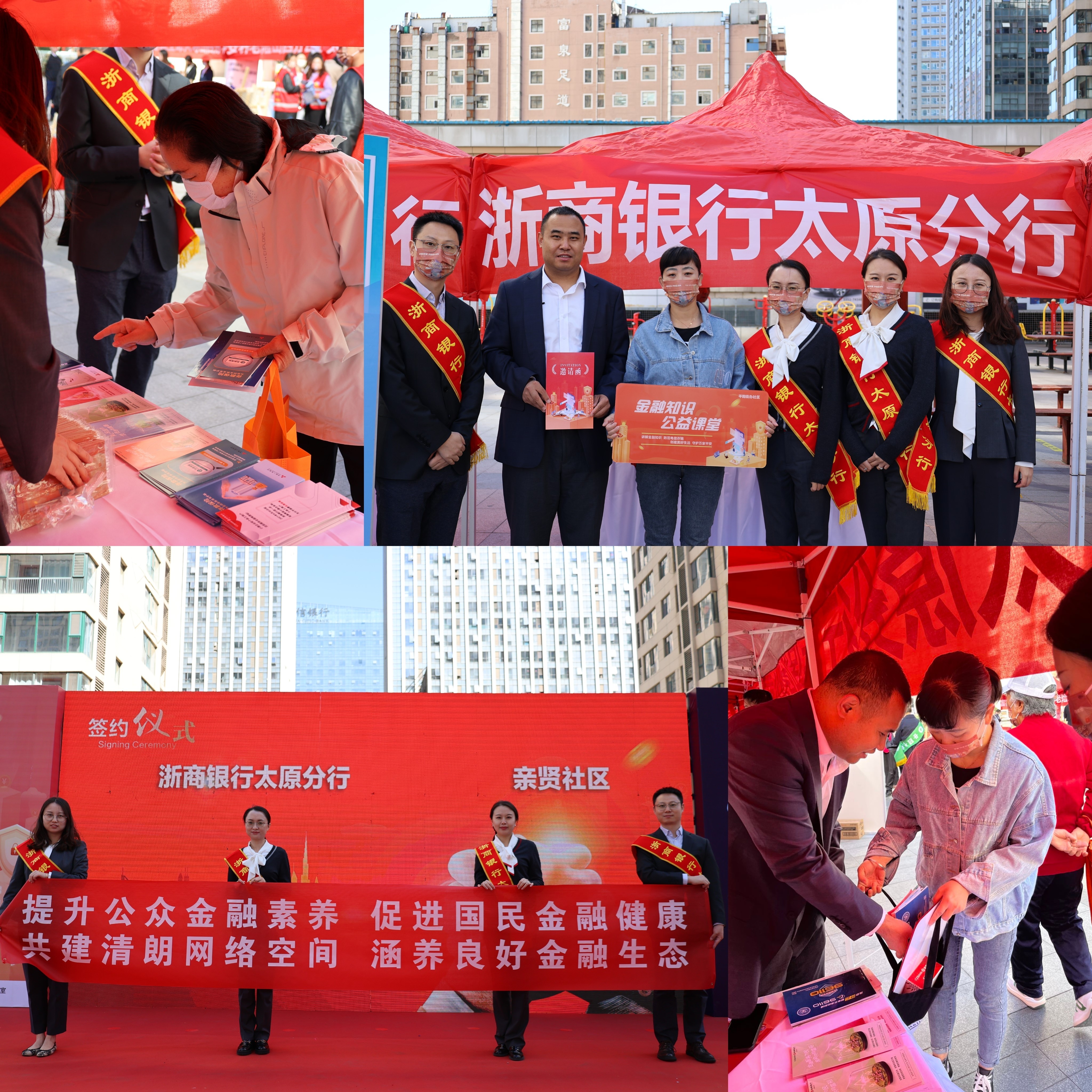 中国网财经9月26日讯为进一步打开社区教育宣传工作专业化新局面,2022年9月23日,浙商银行太原分行联合平安银行、广发银行等18家同业金融机构,与太原市小店区平阳路街道办共同举办“2022年金融知识进万家”教育宣传活动。活动中,我分行与亲贤社区开展结对子仪式,为常态化走进社区开展宣传奠定基础。