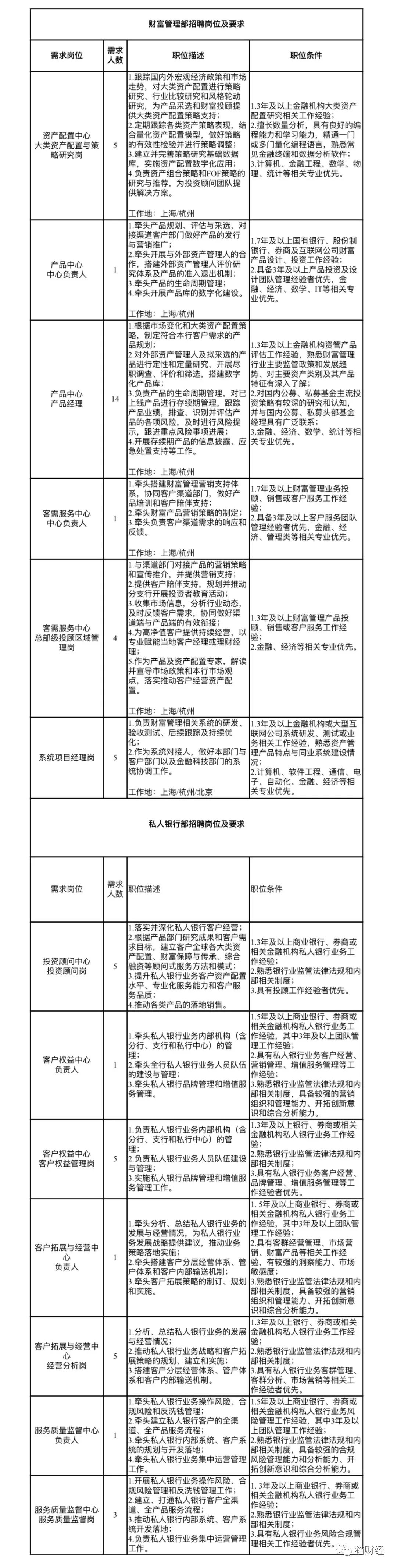 现因业务发展和人才储备需要,面向社会诚聘英才。我们将为每位加盟的员工构建良好的职业生涯发展之路,提供业内具有竞争力的薪酬福利待遇,诚挚欢迎业内有识之士和专业人才加盟浙商银行,携手推动“财富管理全新启航”。