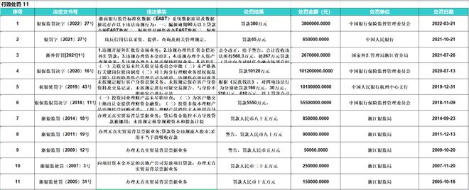 浙商行2022年多起受罚涉及房地产资金违规问题。