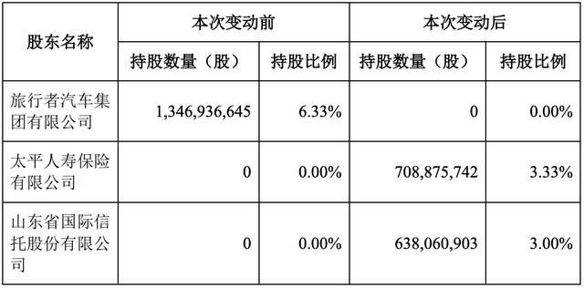直至2023年5月14日,中国太平旗下子公司——太平人寿联合山东省国际信托(下称“山东国信”)以起拍价竞得这笔股权,成交价为30.06亿元,对应的成本为每股2.232元。拍卖股份过户完成后,太平人寿与山东国信将分别持股3.33%和3.00%。