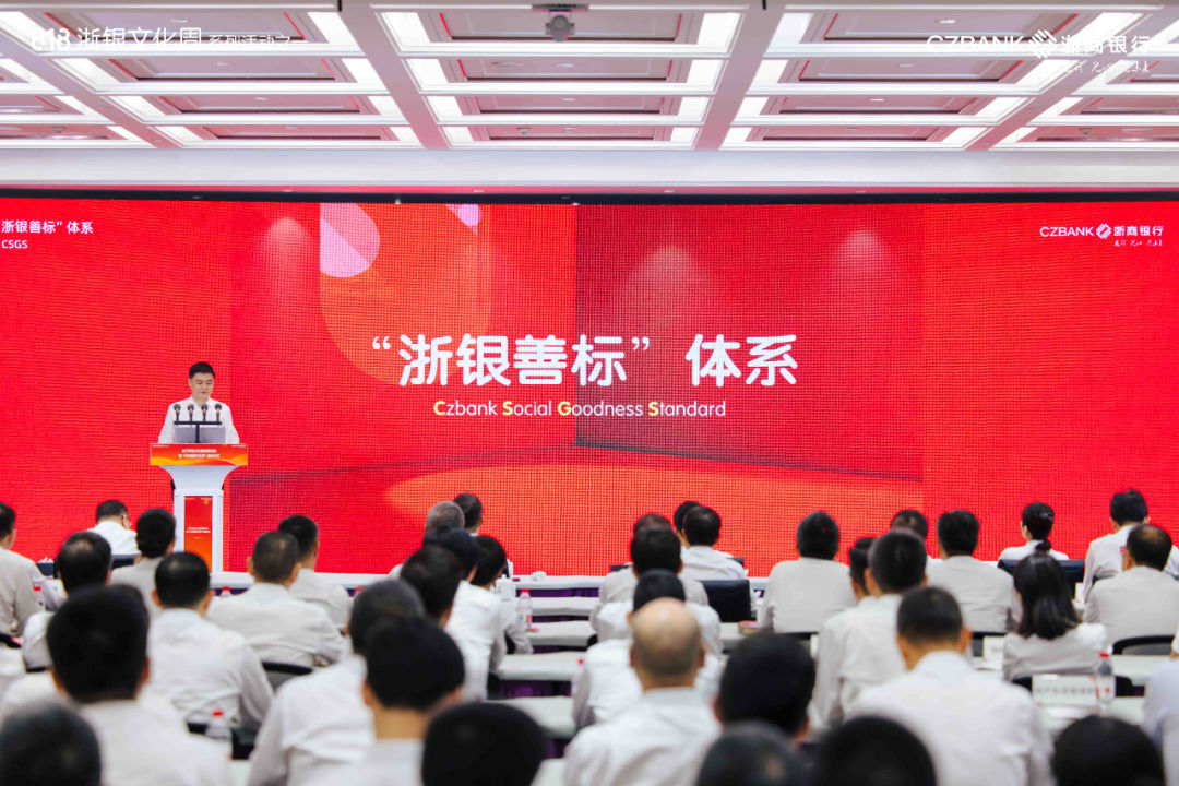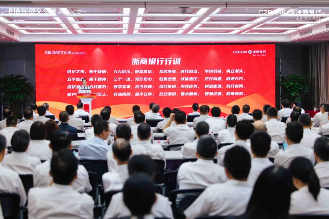 在会上,党委书记、董事长陆建强对全行政治文化建设工作进行全面部署,党委副书记、行长张荣森主持会议并作具体部署,党委副书记马红发布《浙商银行行训》《浙商银行之歌》《浙银公约2.0版》,行长助理潘华枫(拟任)发布“浙银善标”,全体行领导共同启动“8.18浙银文化周”。会前,行领导出席杭州钱江新城大楼文化展厅焕新启用仪式并参观了展厅。