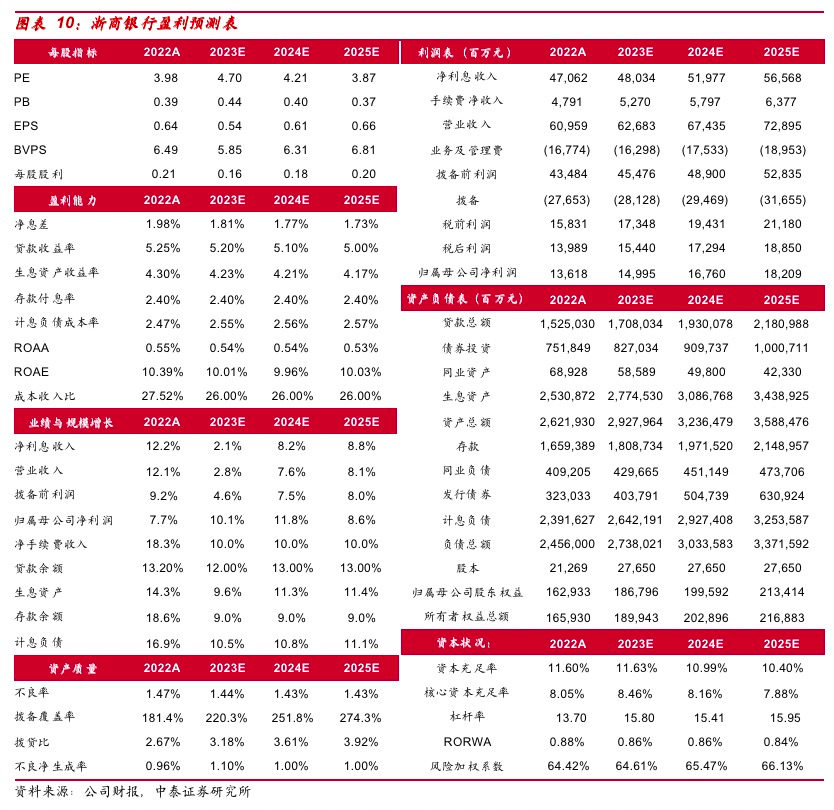 投资建议:公司2023E、2024E、2025E PB 0.44X/0.40X/0.37X;PE 4.70X/4.21X/3.87X。浙商银行经营区域优质,随着深耕浙江战略不断深化,经济周期弱敏感资产占比不断提升,资产质量包袱加速出清,配股助力资本改善,后续业绩持续增长可期。首次覆盖,给予“增持”评级。