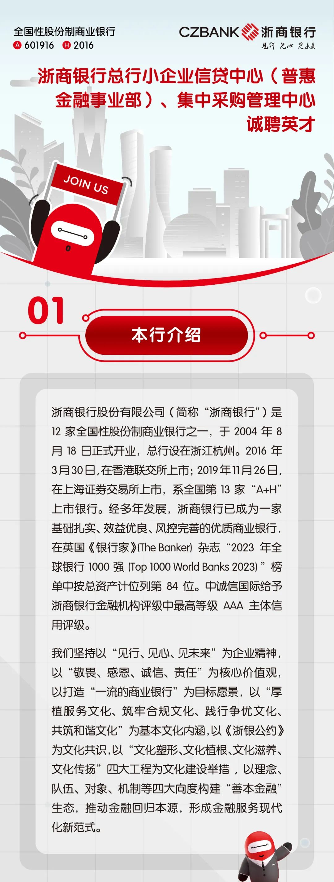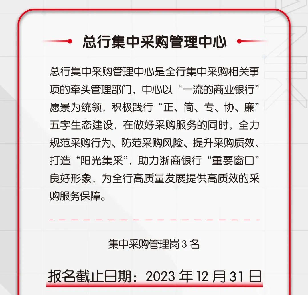 【社招】浙商银行总行小企业信贷中心(普惠金融事业部)、集中采购中心招贤纳士