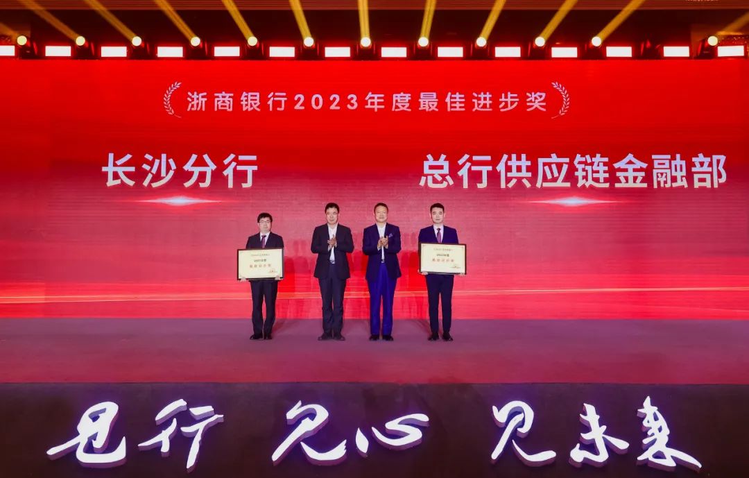 长沙分行、总行供应链金融部主动作为,业务规模、经营效益进步明显,各项业务指标涨幅喜人,提质增效成果显著,荣获2023年度“最佳进步奖”。