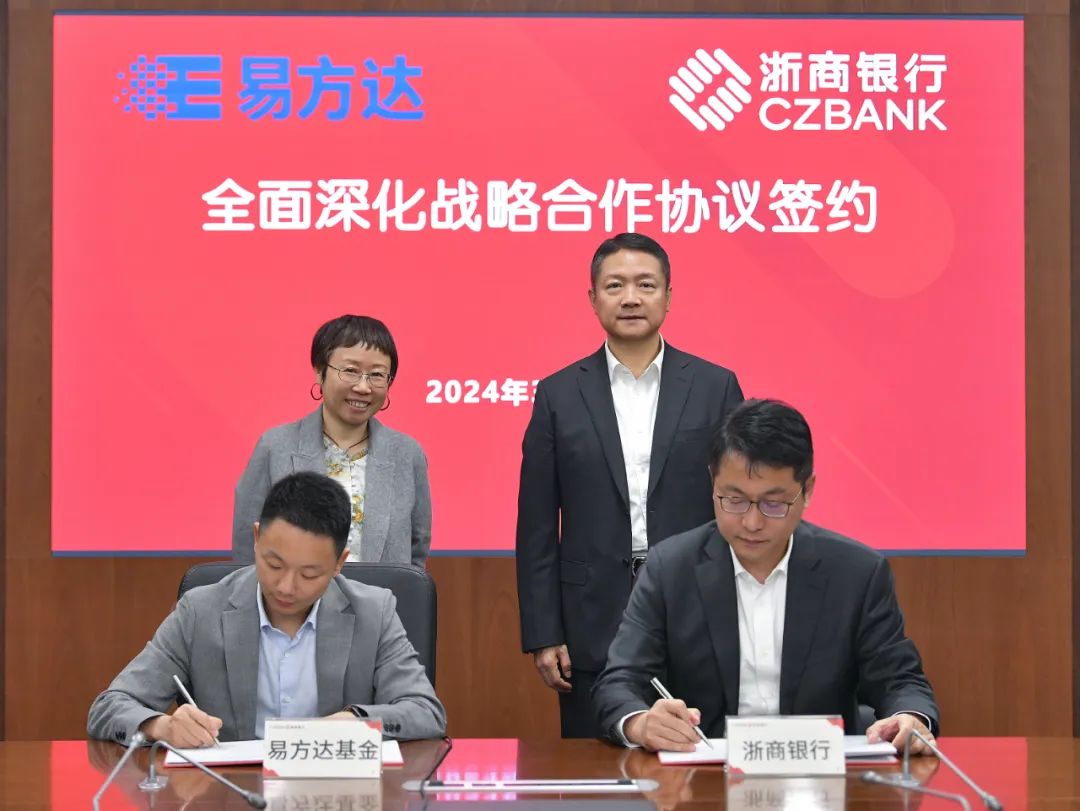 3月19日,浙商银行股份有限公司(以下简称为“浙商银行”)与易方达基金管理有限公司(以下简称“易方达基金”)在杭州签署全面深化战略合作协议,进一步巩固提升双方战略合作伙伴关系。