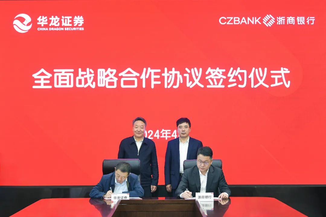 4月19日,浙商银行与华龙证券股份有限公司(以下简称“华龙证券”)在杭州签署全面战略合作协议。根据协议,双方将在财富管理、投资银行、资产管理、同业金融等领域加强全面合作,实现资源共享、优势互补,携手创新金融服务方式和手段,共同推进实体经济高质量发展。