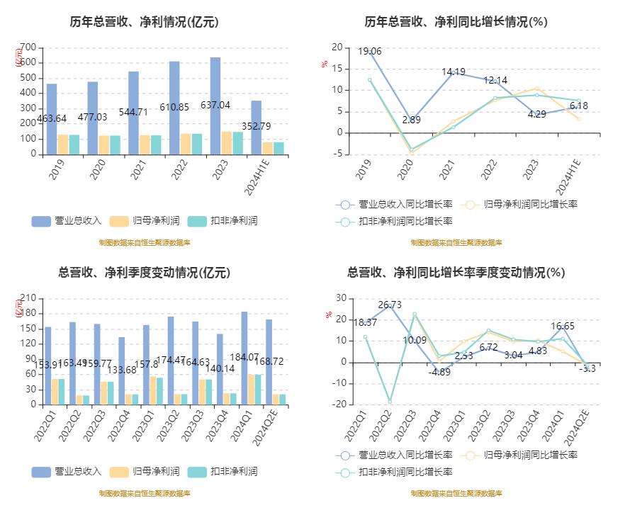 数据显示,2024年上半年公司加权平均净资产收益率为9.65%,较上年同期下降1.31个百分点。