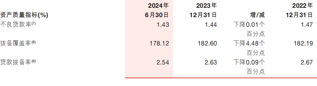 截至2024年6月末,浙商银行资产质量指标来源:浙商银行半年报