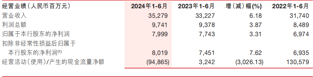 浙商银行2024年上半年经营业绩来源:浙商银行半年报