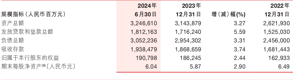 截至2024年6月末,浙商银行规模指标来源:浙商银行半年报