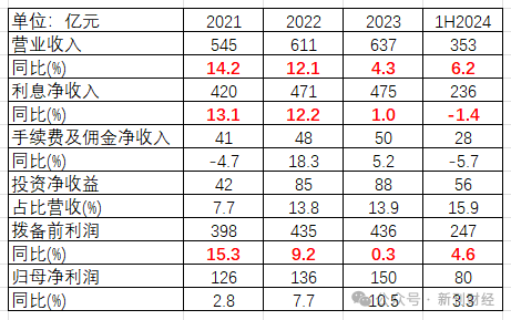 如上表所示,近两年浙商银行收入增速已经从2021年至2022年的10%以上,落入到仅5%左右的水平。2021至2024年上半年收入增速分别为14.2%、12.1%、4.3%和6.2%。从细项数据来看,利息和手续费收入更是在今年上半年落入负增长。值得注意的是,2023年浙商银行拨备前利润就几乎0增长,直到2024年上半年才有所恢复。当然,浙商银行通过一定拨备调节方式,使得净利润增速波动有所减小。