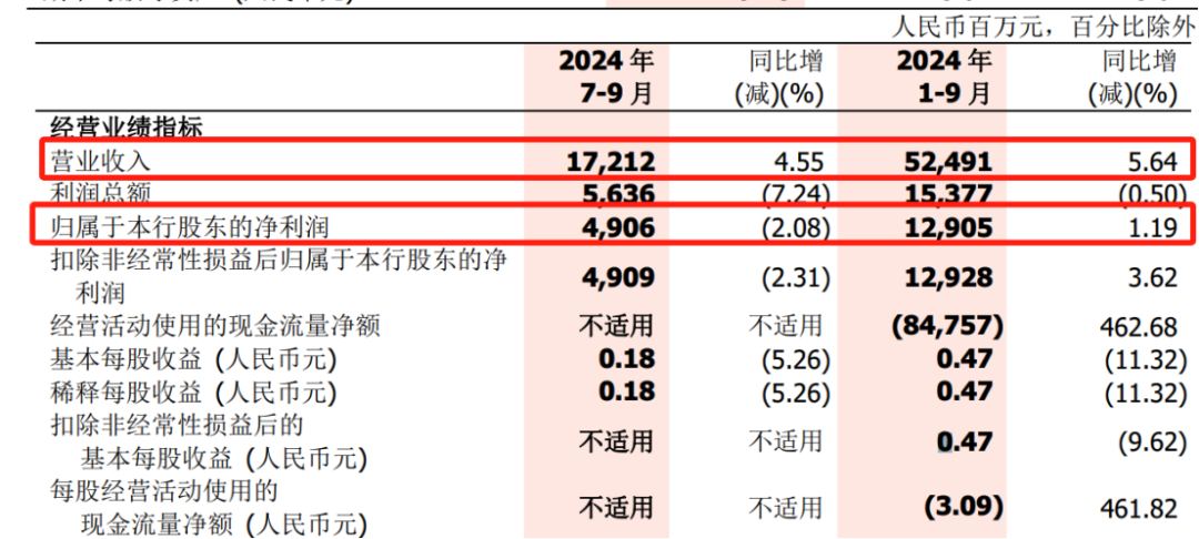 整个前三季度,该行营收略有增长,净利润增速创近4年同期新低。