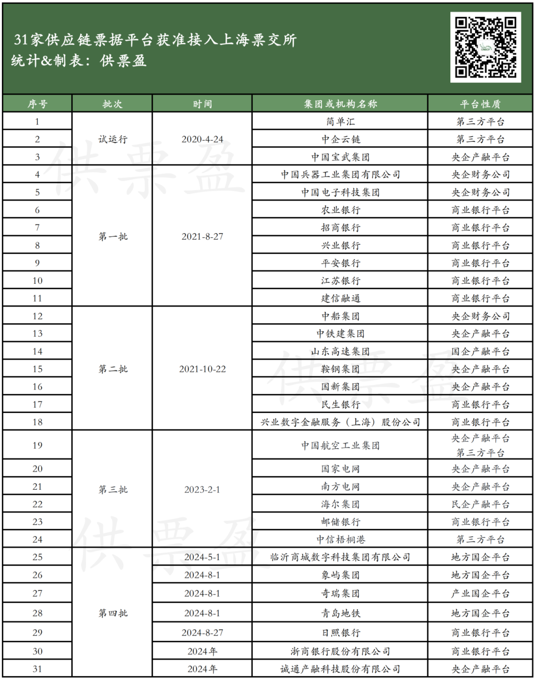 截至目前,共有31家供应链票据平台获准接入上海票交所。
