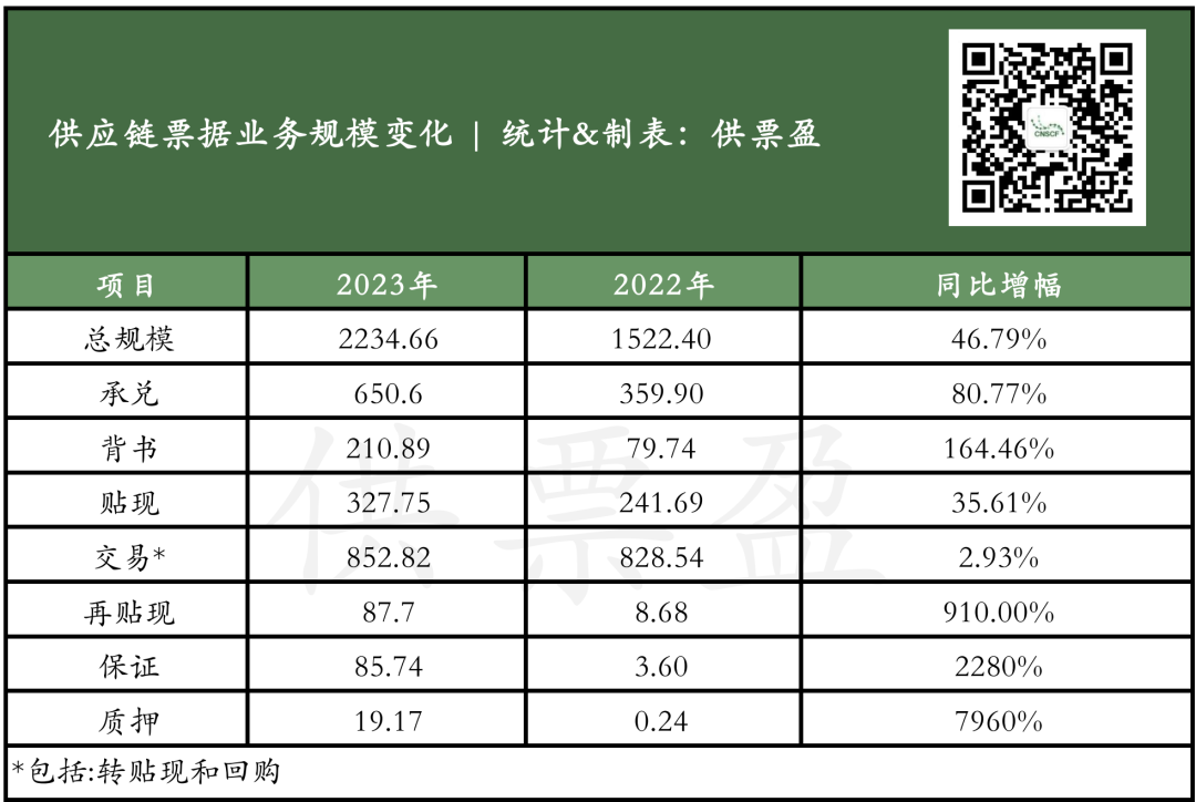 2023年供应链票据各项数据爆发,多项交易数据成双位数乃至倍数增长。