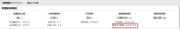 《新财观》据数据统计,过去四年(2020年~2023年),浙商银行的人均薪酬由55.25万元,上涨至58.41万元;2023年,高管平均薪酬230.55万元,为人均薪酬的3.9倍。