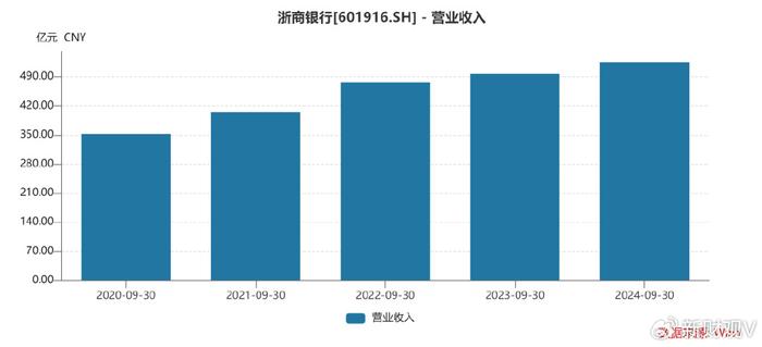 三季报显示,2024年前三季度,浙商银行营收525亿元,较上一年同期497亿元的营收,同比增长5.64%。同期,上市股份行营收平均增速为-2.4%,该行名列第一。