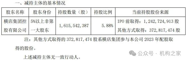尽管自1999年注册成立至今,横店集团历经多年的发展后,早已枝繁叶茂、产业众多,但本次减持公告披露,“基于自身经营发展需要,拟在本公告披露之日起15个交易日后的三个月内,通过集中竞价和大宗交易方式合计减持其持有的A 股股票不超过274,646,359股(含本数),即减持比例不超过本公司总股本的1%。”