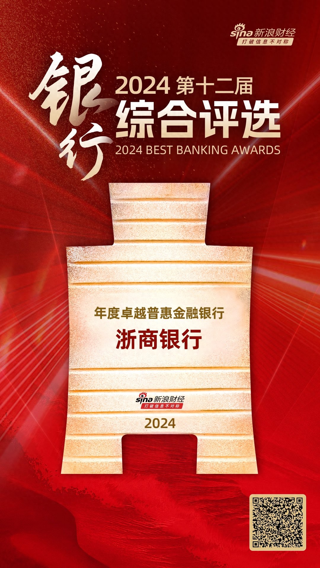 1月23日金融一线消息,由新浪财经主办的“2024(第十二届)银行综合评选”活动获奖名单今日正式揭晓!浙商银行获评“年度卓越普惠金融银行”。