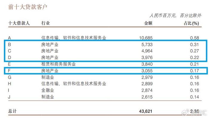 浙商银行2024前十大贷款客户中,有4家是房地产业客户,合计贷款金额约177.28亿元。