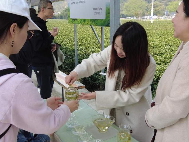 随着热水的冲泡,茶碗中香气四溢,“黄茶虾仁”“黄茶水晶糕”等黄茶美食征服了主持人的味蕾,特色饮品“黄茶拿铁”牢牢抓住了来自宁波、绍兴等地游客的眼球。