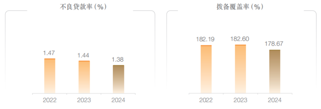 不良贷款率方面,浙商银行已连降三年,截至2024年末为1.38%,较上年末下降6个基点,更是较银行业同期整体不良贷款率1.5%低出12个基点。同期末,其不良贷款拨备覆盖率为178.67%。