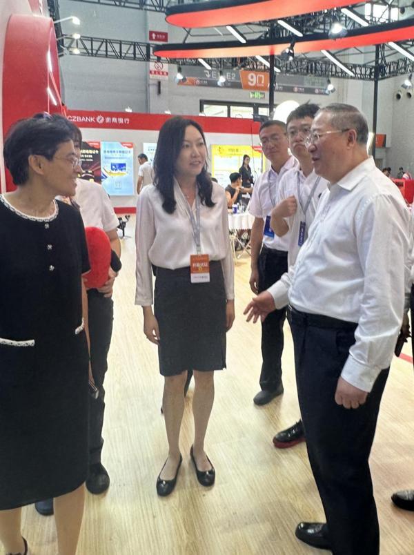 开幕式后,国家粮食和物资储备局刘焕鑫局长莅临浙商银行展厅参观,并与我行参展团队亲切交流。北京分行徐晓静副行长向刘焕鑫局长介绍了浙商银行为国家粮食和物资储备局粮食交易协调中心定制的“惠农通”“富农通”两款融资产品。刘焕鑫局长对浙商银行长期以来在助农惠农领域提供的金融服务表示肯定,并感谢浙商银行对粮食流通作出的贡献,希望浙商银行提供更加丰富多元的金融服务,促进粮食产业高质量发展。