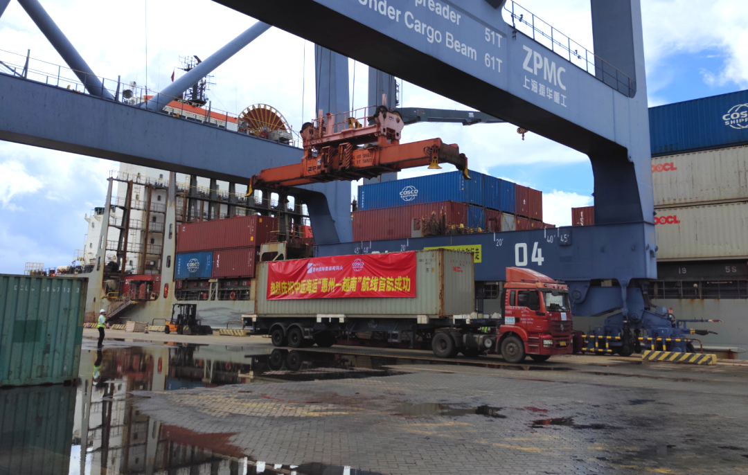 中远海运“惠州-越南”航线是惠州市第一条东南亚外贸航线,挂靠港序为:海南小铲滩-广西钦州-香港-南沙-惠州-岘港-胡志明。该航线响应国家战略,链接海南自贸港、西部陆海新通道、粤港澳大湾区,是公司在华南地区开通的又一精品航线。