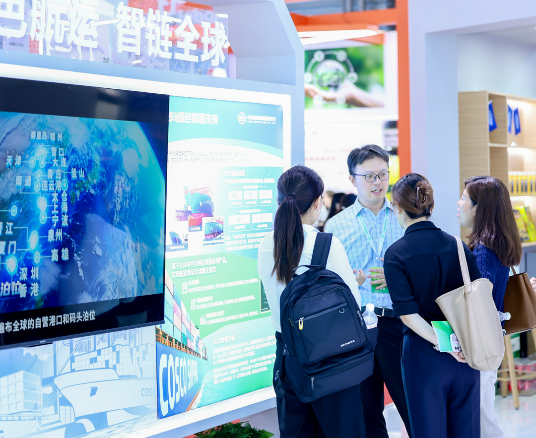 本次展会主要聚焦能源转型、低碳交通、节能增效、循环经济、低碳服务、实践探索六大板块,中远海运展台围绕低碳、可持续发展的设计理念,打造出了极具“绿色航运”特色的中远海运展示区域。