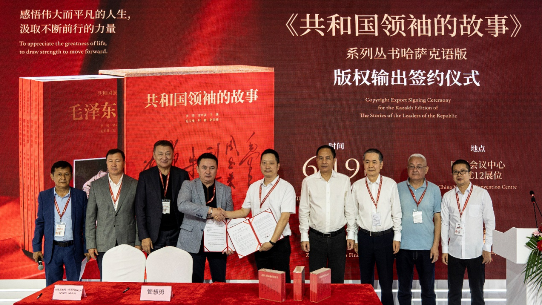 6月19日,浙江人民美术出版社与哈萨克书籍出版社联合举办《共和国领袖的故事》系列丛书哈萨克语版版权输出签约仪式。该系列丛书正式进入哈萨克斯坦市场,为中哈文化交流与出版合作再添硕果。