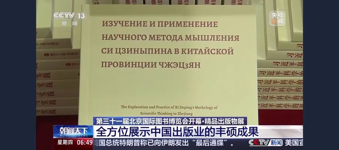 6月18日,浙江人民出版社出版的《习近平科学的思维方法在浙江的探索与实践》俄语和德语版在BIBF上首发,获央视报道
