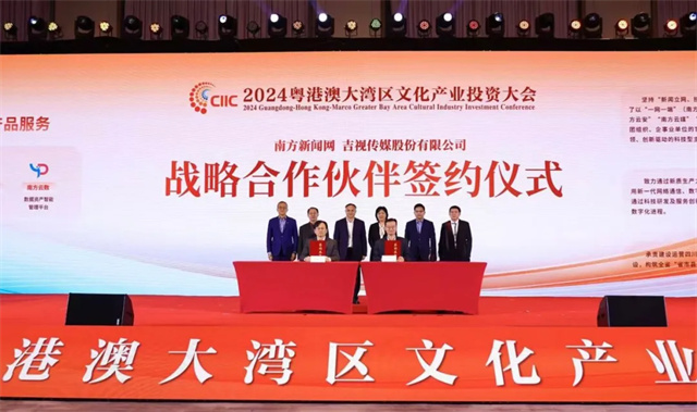 11月21日,在2024粤港澳大湾区文化产业投资大会上,吉视传媒与南方新闻网正式签订战略合作协议。双方将在融媒体数字平台建设、数字产品开发、政务信息服务、文旅业态打造、数字资源开发利用等五个方面开展全面合作。