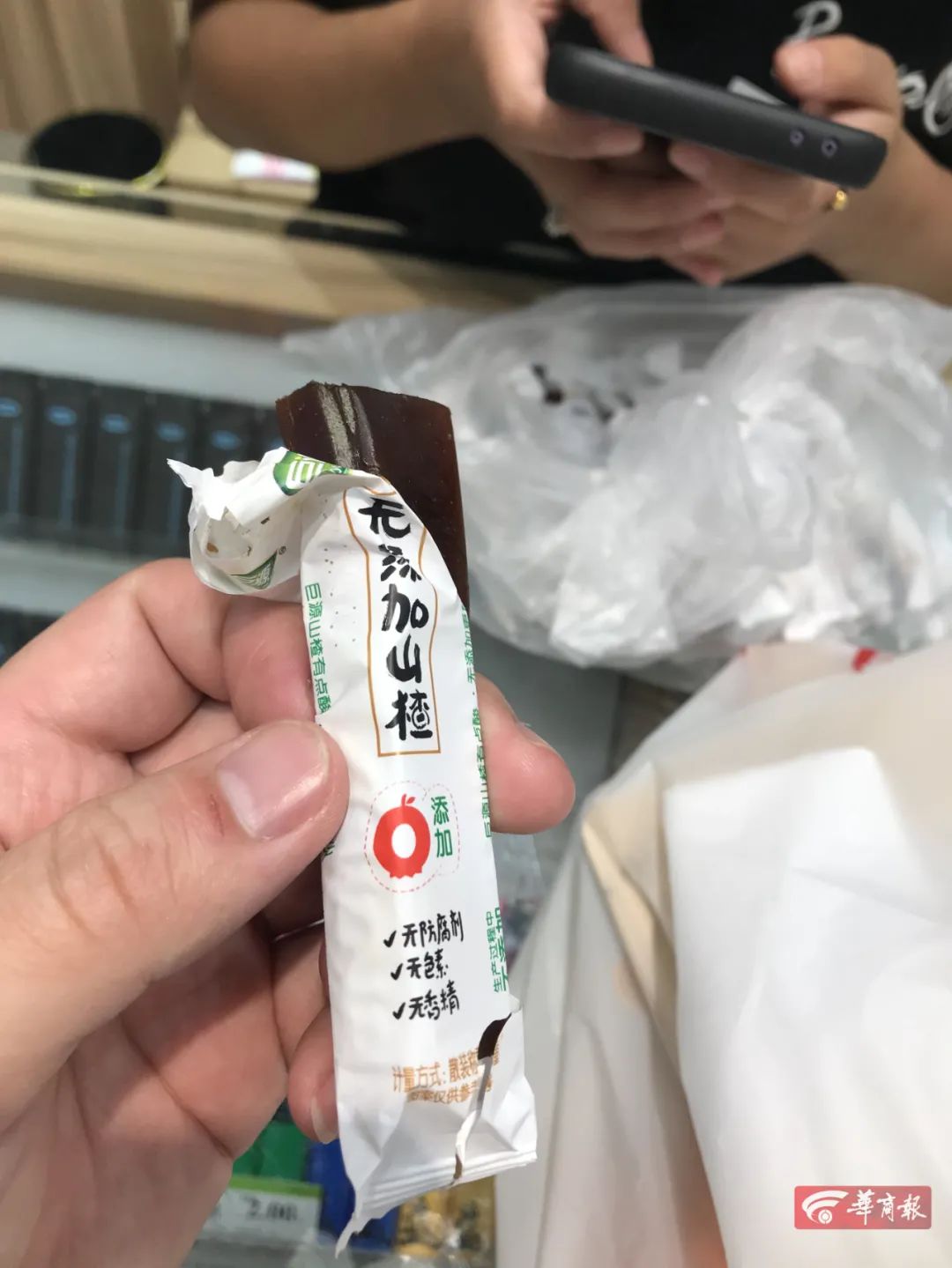 刘先生告诉华商报记者,7月14日下午,他在该超市买了几样小吃。其中就有巨源牌原味无添加山楂条。在付款的时候,收银员说有一个五香花生米的价钱不对,让去服务台处理,“我到服务台一边等待工作人员处理,一边就打开买的山楂条吃。”刘先生说,他剥开第一个山楂条的包装就发现长毛了,现场还给服务台的人看了,然后一连剥了几个,都有发霉长毛的现象。