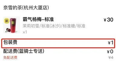之前,我们也报道过奈雪、乐乐茶、喜茶……外卖都要1元包装费:奶茶的快乐越来越难了!喝杯奶茶,还要花1元买袋子……这种包装费,你注意到了吗?