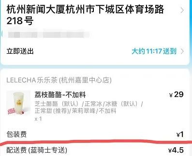 橙柿互动记者当时联系了杭州的乐乐茶商家,对方说提供的是保温袋,包装费用则是根据数量算的,每杯1元,点3杯就是3元,最近才开始,外卖单子默认操作。如果在店里,买个保温袋是2元一只。
