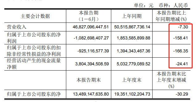 半年净利亏损10.83亿元