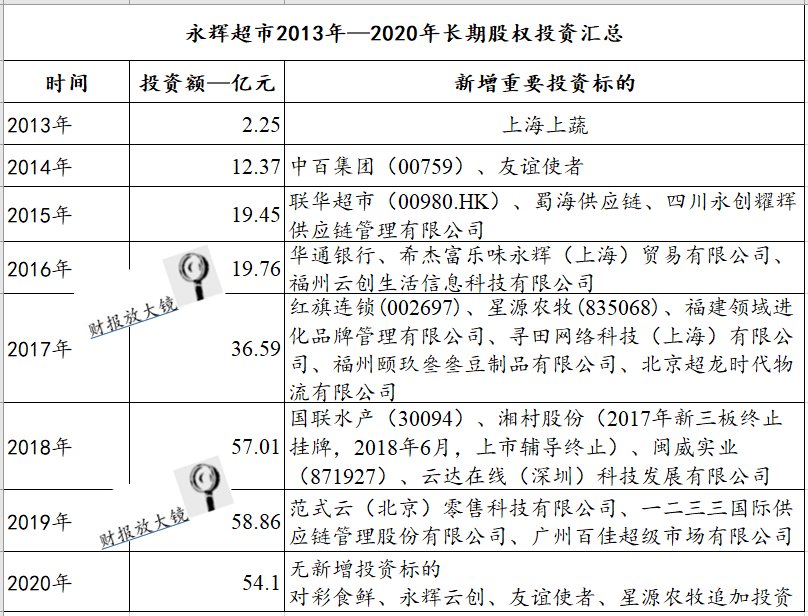 2014年—2020年,永辉超市长期股权投资情况汇总如下: