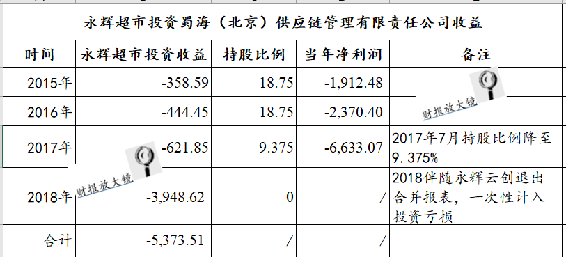 实际上,蜀海供应链、福建领域进化品牌管理有限公司、寻田网络科技(上海)有限公司、北京超龙时代物流有限公司的投资,永辉超市均是通过永辉云创,似乎为后续永辉云创退出合并报表做了铺垫。