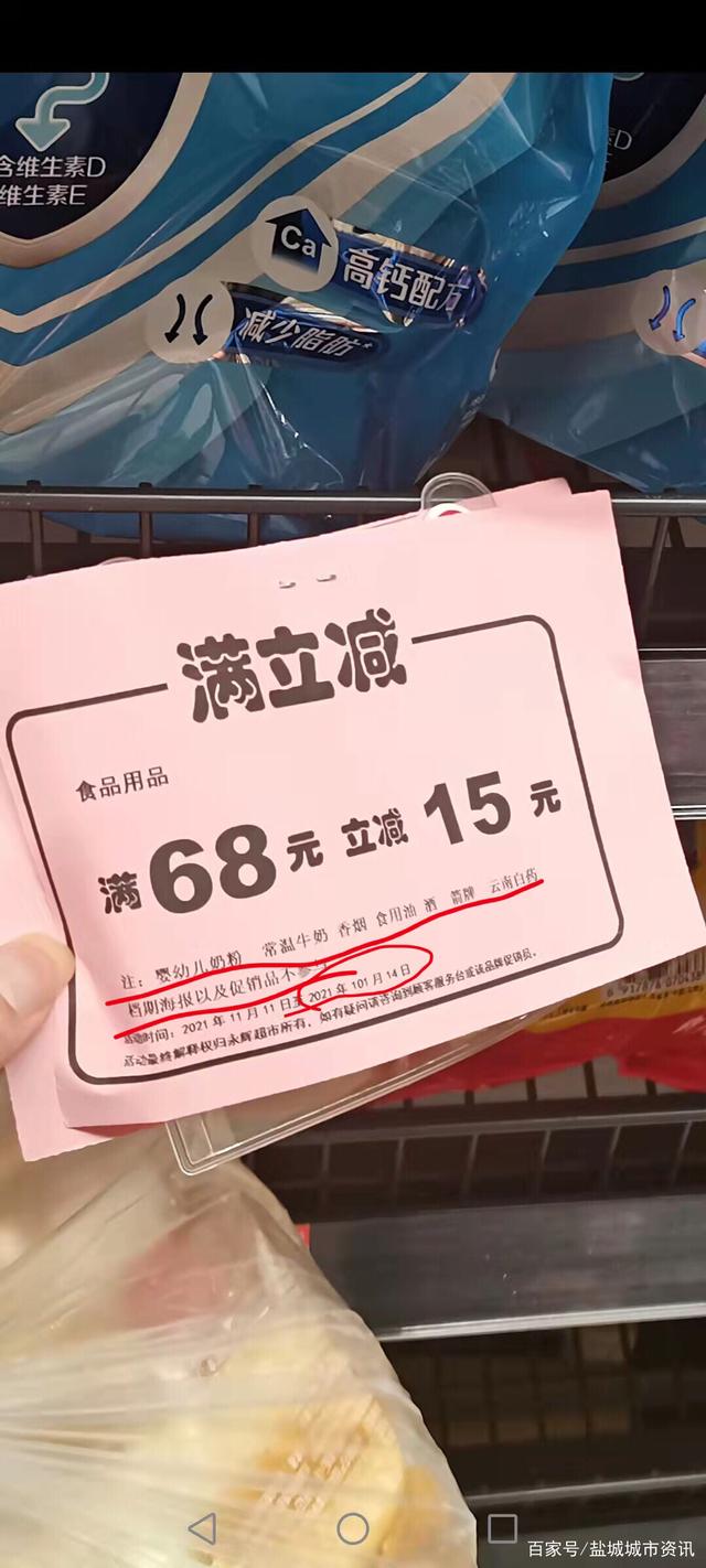 网友投稿:永辉超市新纪元店搞活动小观能不写清楚,误导消费者?网友下班特地赶到永辉超式临安市新然政纪元买成人奶粉,因为有活动,(满68减15,里面标明:婴幼儿奶粉不参加),但是到了收银台却告知不参加优惠?成人奶粉属于婴幼儿系列?另外还有活动有效期到2021年101月14日是什么鬼?