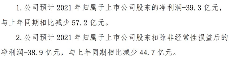 2021年1月末,永辉超市公布了2021年年度业绩预亏公告。该公司预计2021年全年归属于上市公司股东的净利润(下称归母净利润)为-39.3亿元,相较上年同期缩水57.2亿元。扣除非经常性损益后的净利润预计为-38.9亿元,较上年同期减少44.7亿元。
