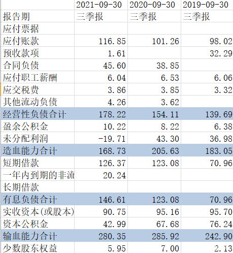 同时,横向比较往年可知,虽然今年遭遇亏损,但永辉超市的经营性负债不降反增,其只有未分配利润一项为负,从而拉低了企业的整体造血能力。这正支持了笔者在前文中对企业经营质量做分析后得出的结果,即永辉超市在2021年的亏损主要来自相对外因的自我调节,而对企业本身经营活动的能力和市场竞争力仍可以抱有信心。