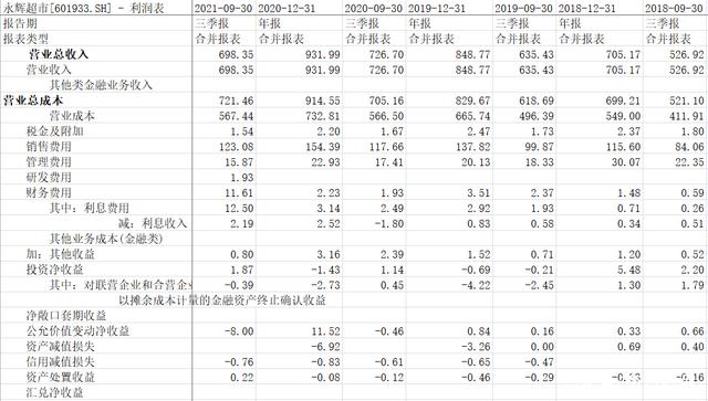 要想利润高就得“开源节流”,横向对比往年利润表数据,可以看到永辉超市2021年前三季度的营业收入698亿元,相比于2020年同期的726亿元,明显减少了28亿元的营业收入,这反应永辉超市的成长性出现问题,在“开源”先失一城。