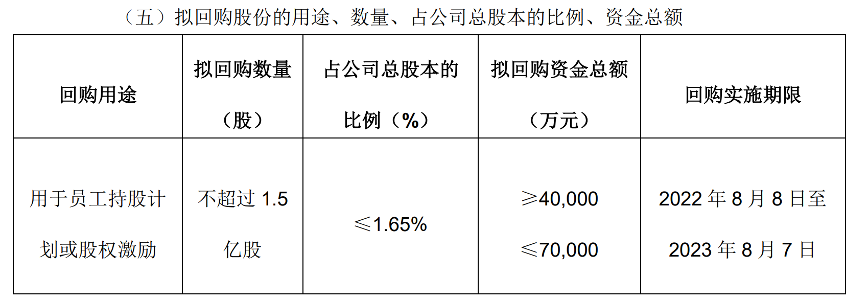 公告显示,本次回购股份用于员工持股计划或者股权激励,公司如在股份回购完成之后36个月内未能全部用于上述用途,未使用的部分将依法予以注销,公司将启动另行处置的程序。