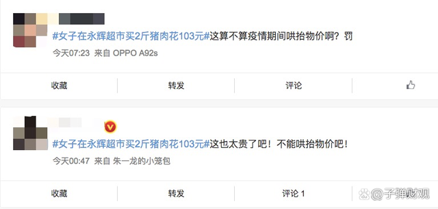 这件事发生后,该消费者以及部分网友都曾质疑永辉超市卖高价猪肉这件事是否是在哄抬物价。