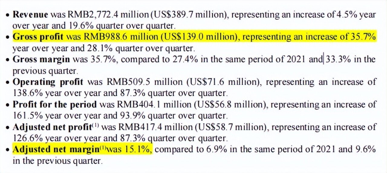 直到2022上半年,名创优品的业绩才得以改善。2022年上半年,名创优品录得营收54.27亿元,实现利润3.39亿元,扭亏为盈。