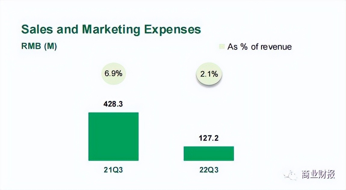 一个下降非常明显的数据是销售与营销开支,为1.27亿元,去年同期这个数字为4.28亿元,这是成本中下降最多的一项,整整降了7成。